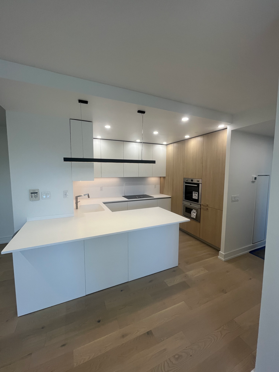 Discover the beauty of modern kitchen designs featuring sleek cabinets, glass displays, and white islands. Experience the perfect blend of functionality and style in these contemporary culinary spaces.